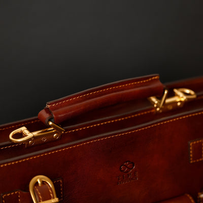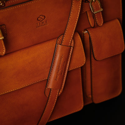 Time Resistance fertigt aus italienischem Vachetta-Vollnarbenleder, pflanzlich gegerbt und von Hand gefärbt. Mit der Zeit entsteht eine edle, unverwechselbare Patina.