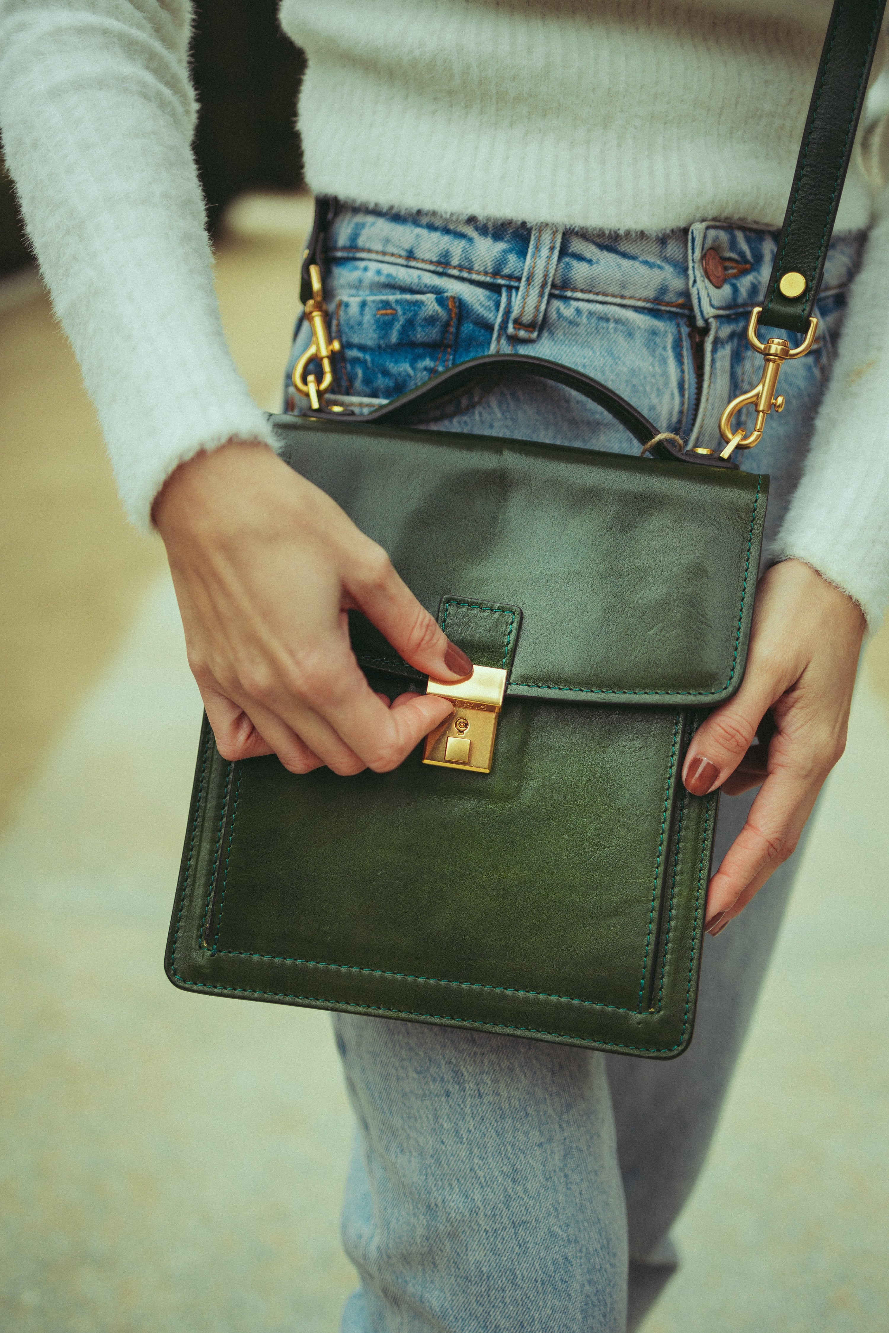 Schicht für Schicht von Hand eingefärbt. Der Ton wird ins Leder einmassiert und bringt Tiefe, Wärme und natürliche Nuancen zum Vorschein.
