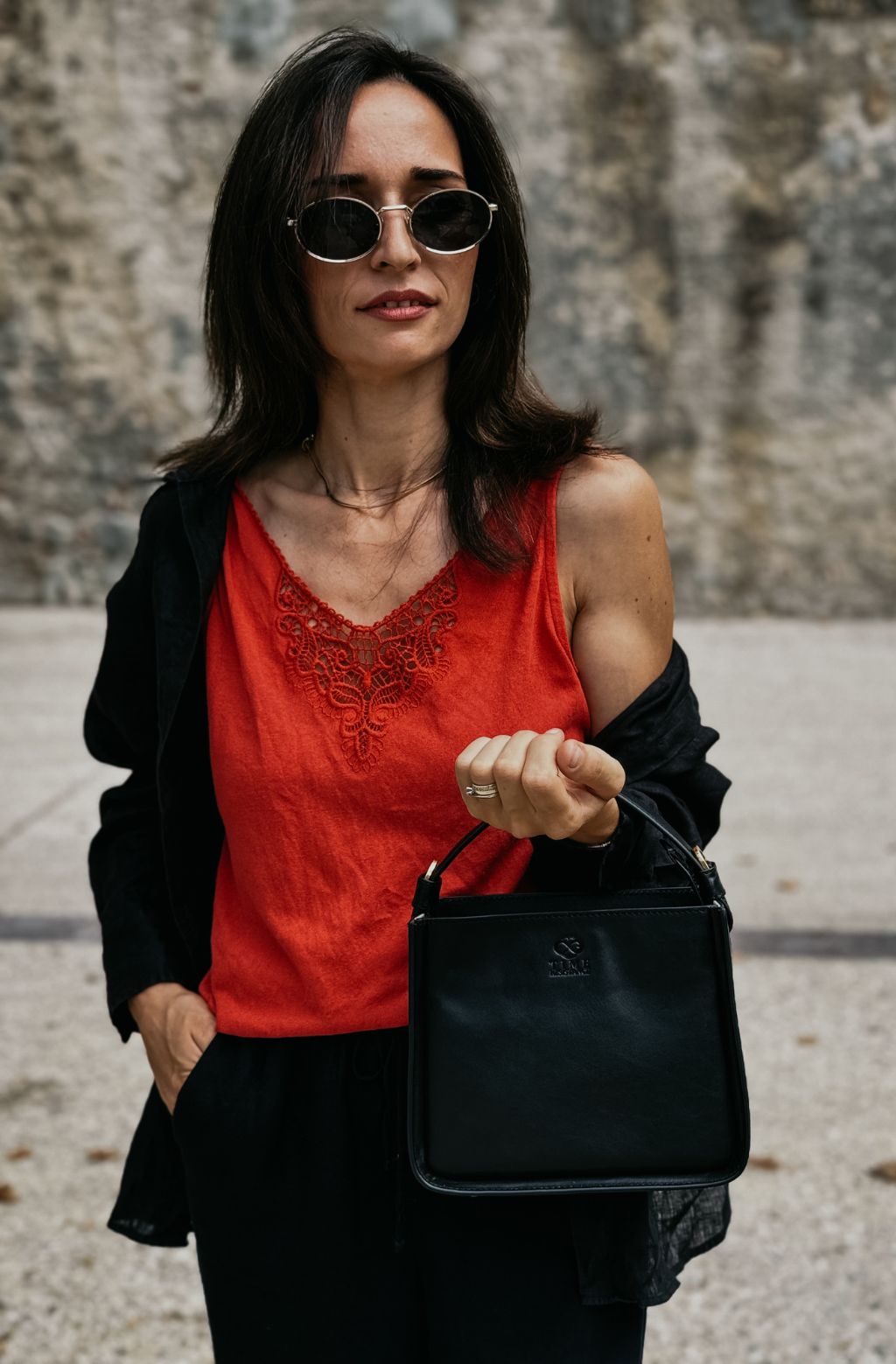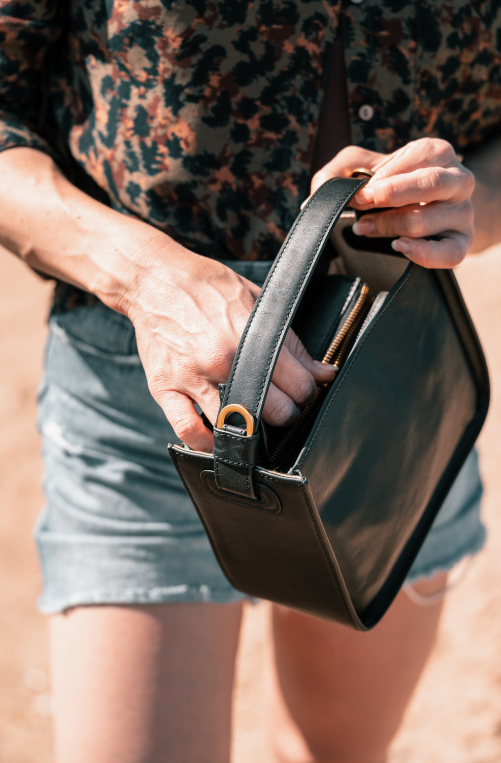 A beautifully made leather handbag. However, it falls a little short at being described as a tote bag. It also has quite a big opening around the close of the zipper. This doesn’t allow the bag to be fully closed. The opening of the bag is a small as well.