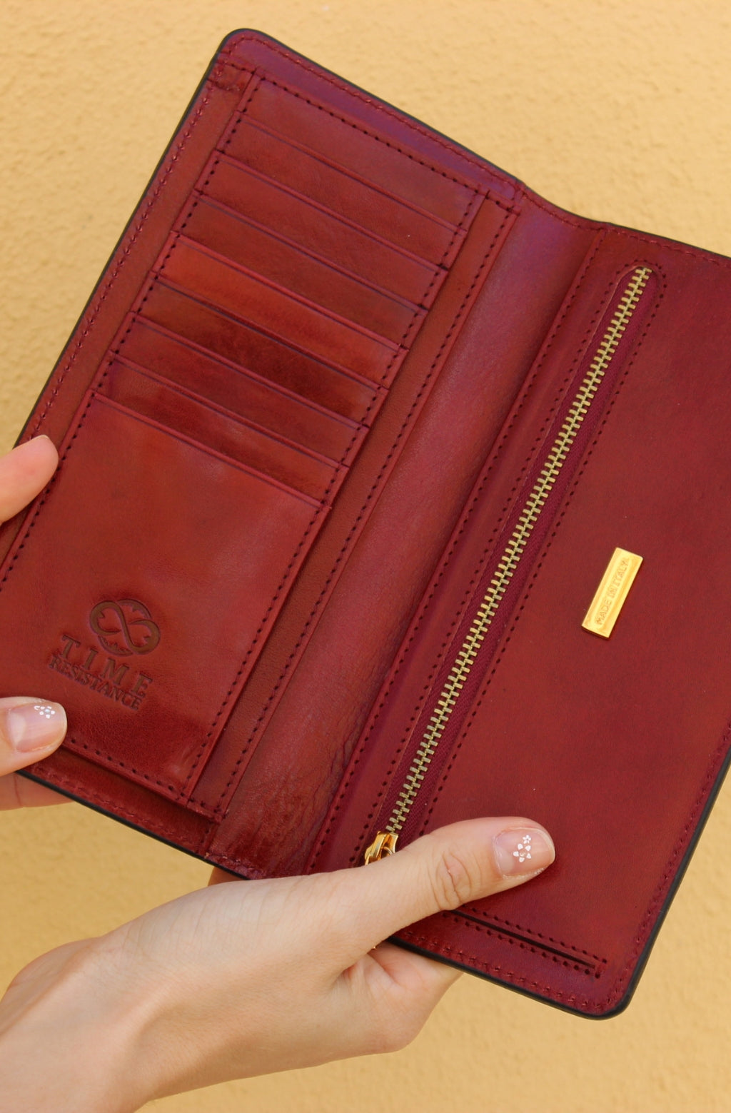 Time Resistance fertigt aus italienischem Vachetta-Vollnarbenleder, pflanzlich gegerbt und von Hand gefärbt. Mit der Zeit entsteht eine edle, unverwechselbare Patina.