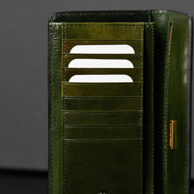Schicht für Schicht von Hand eingefärbt. Der Ton wird ins Leder einmassiert und bringt Tiefe, Wärme und natürliche Nuancen zum Vorschein.