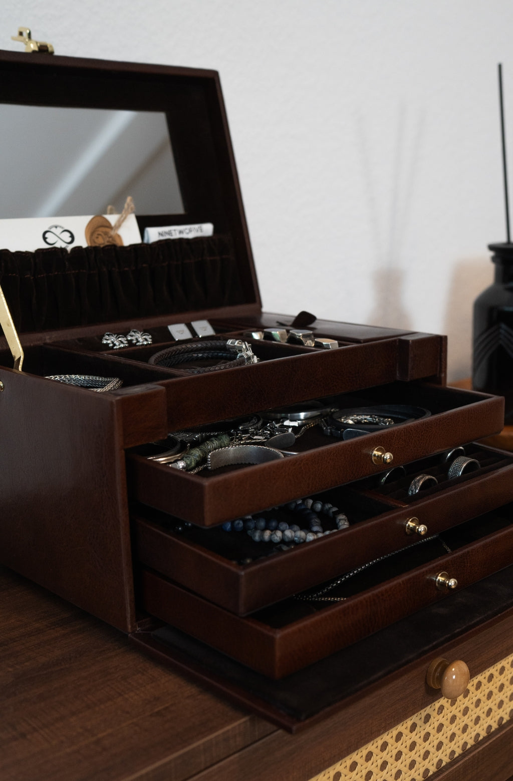 Schicht für Schicht von Hand eingefärbt. Der Ton wird ins Leder einmassiert und bringt Tiefe, Wärme und natürliche Nuancen zum Vorschein.