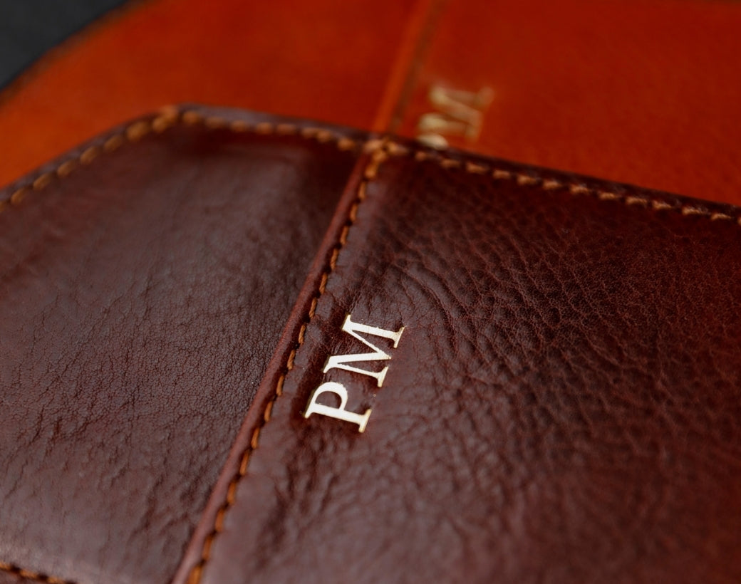 Für eine zeitlose und edle Note können Sie Ihrem Lederaccessoire ein Monogramm hinzufügen. Unser Prägeverfahren verleiht Ihren Initialen im Leder einen subtilen, aber dennoch markanten Effekt. Um Ihren Artikel mit einem Monogramm zu personalisieren, wählen Sie bei der Bestellung die Option „Personalisierung“ und geben Sie folgende Details in den Bestellanweisungen im Warenkorb an: