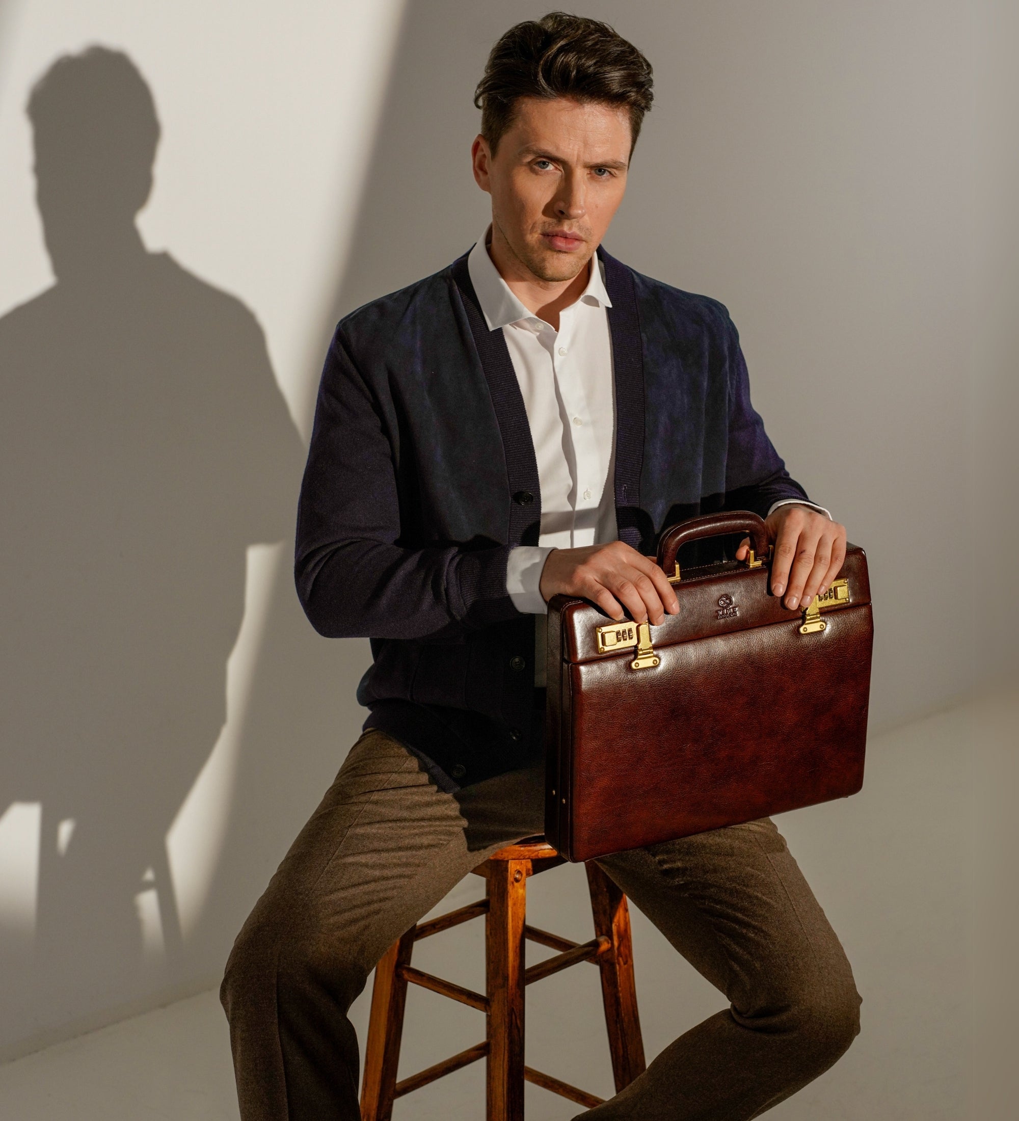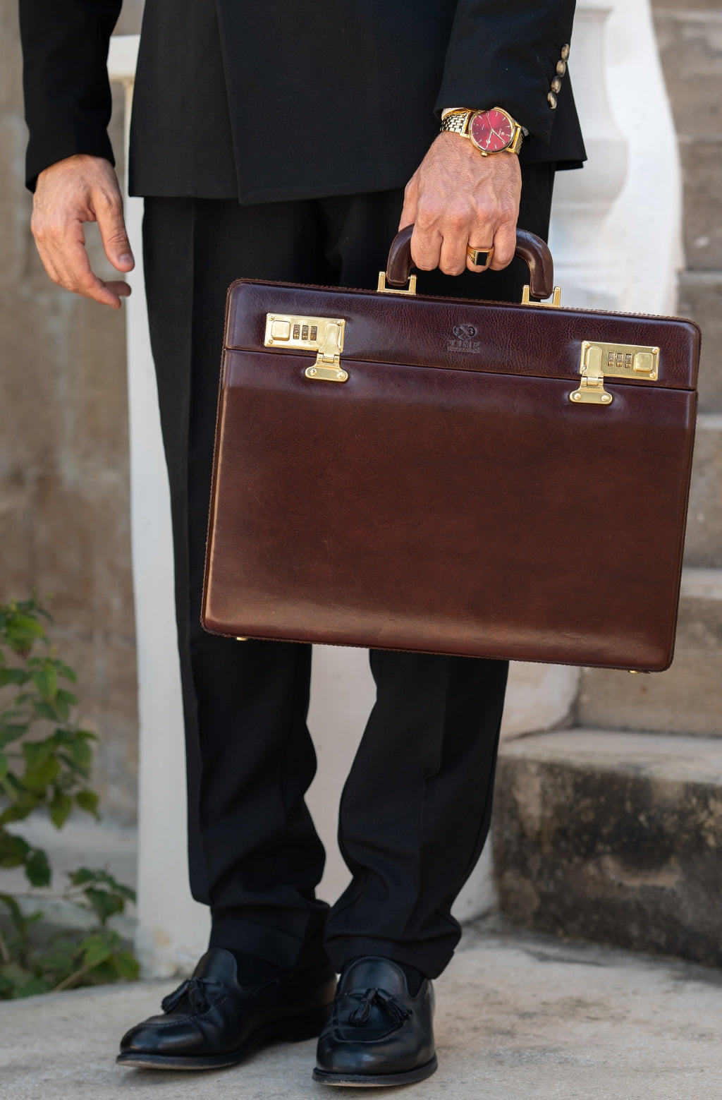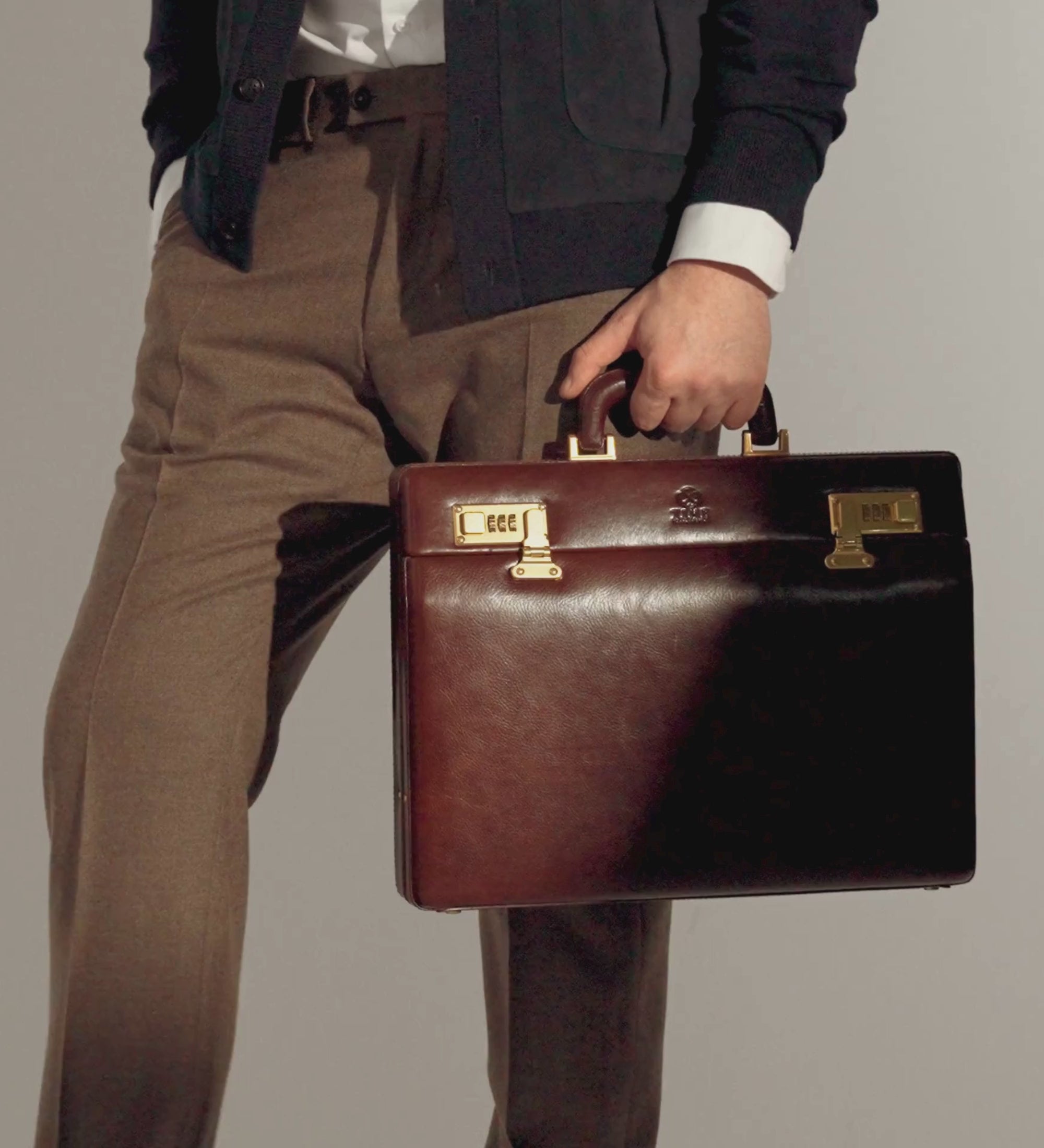Diese exquisite Aktentasche aus Leder ist der perfekte Weg, um Ihre wichtigen Dokumente und Besitztümer luxuriös und elegant zu transportieren. Fachmännisch aus Leder höchster Qualität gefertigt, ist dieser Aktenkoffer auf eine lebenslange Nutzung ausgelegt. Mit einem geräumigen Hauptfach und mehreren Innentaschen bietet dieser Aktenkoffer reichlich Stauraum für all Ihre Gegenstände. Das sichere Design sorgt dafür, dass Ihre Sachen sicher und geschützt bleiben, während das stilvolle Äußere dafür sorgt, dass Sie mit Ihrem Aktenkoffer großartig aussehen. Ob Geschäftsmann oder Student, diese luxuriöse Aktenkoffer aus Leder ist das perfekte Accessoire.