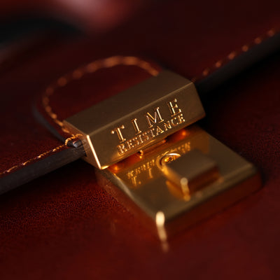 Time Resistance fertigt aus italienischem Vachetta-Vollnarbenleder, pflanzlich gegerbt und von Hand gefärbt. Mit der Zeit entsteht eine edle, unverwechselbare Patina.